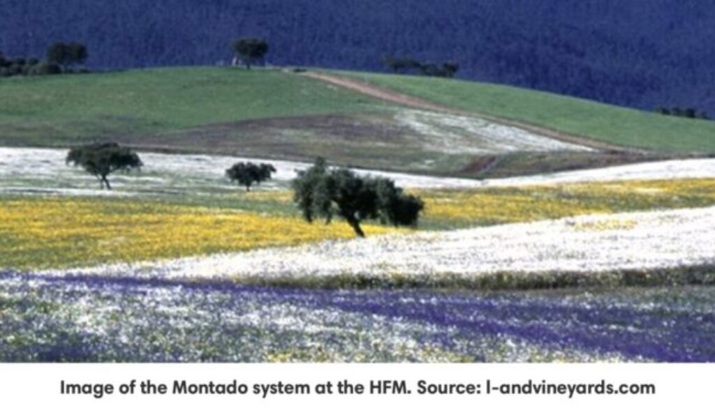 The Herdade do Freixo do Meio (HFM) is a farm located in Montemor-o-Novo in Portugal that manages 440 ha of cork oak and holm oak Montado agroforestry systems. The farm also includes portions of irrigated land, vineyards, olive groves and biodiverse pastures and enables to produce nearly all the ingredients of the Mediterranean diet with the exceptions of milk and fish. The HFM is considered an example of a multifunctional farm based on an agroforestry system in Portugal and remains one of the few economic viable projects on the area.