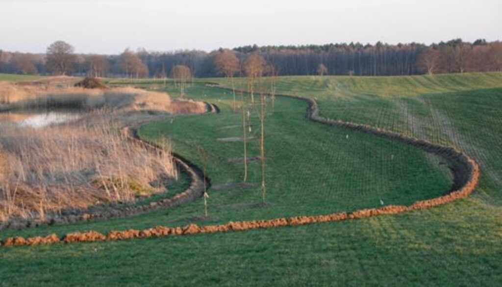 The farm is located on poor sandy post-glacial soils. Inadequate management of the soils may lead to ineffective intensification of farming and adverse environmental impact. Hence, on the one hand, particular attention is given to soil improvement by using own compost, practicing multiannual crop rotation including legumes and other green manure crops. On the other hand, shaping landscape structure is an important element of farm management in order to prevent wind and water erosion and enhance water balance. Apart from creating mid-field water reservoirs, different agroforestry practices are implemented here. In recent years, 5 kilometres of hedges (78,000 square meter) and about 5,000 solitary trees have been planted on the farmland. Moreover, natural stands of mid-field trees are maintained, particularly the ones around marshy areas and water reservoirs. An additional advantage is greater biodiversity, especially where plants, insects, birds and reptiles are concerned.
