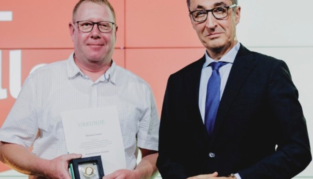 Due to his great commitment, Federal Minister Cem Özdemir awarded Thomas Domin the Professor Niklas Medal. In his speech on the occasion of the ‘political thanksgiving’ event in Berlin, he emphasised the simplification of agroforestry regulations in Germany by changing the distance regulations and abolishing the utilisation concept. “And we’re not finished yet,” the Minister assured.
