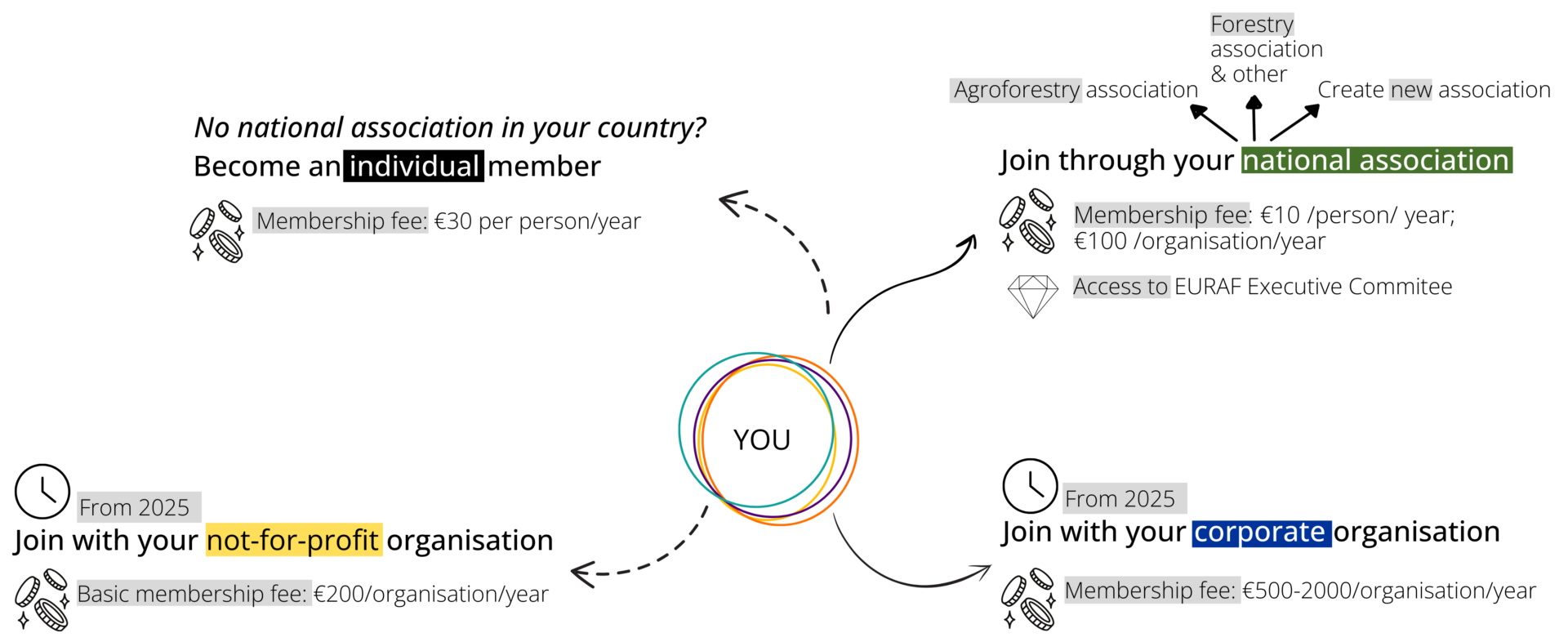 - Seedling membership: 400 EUR – includes one ticket for the EURAF congress
