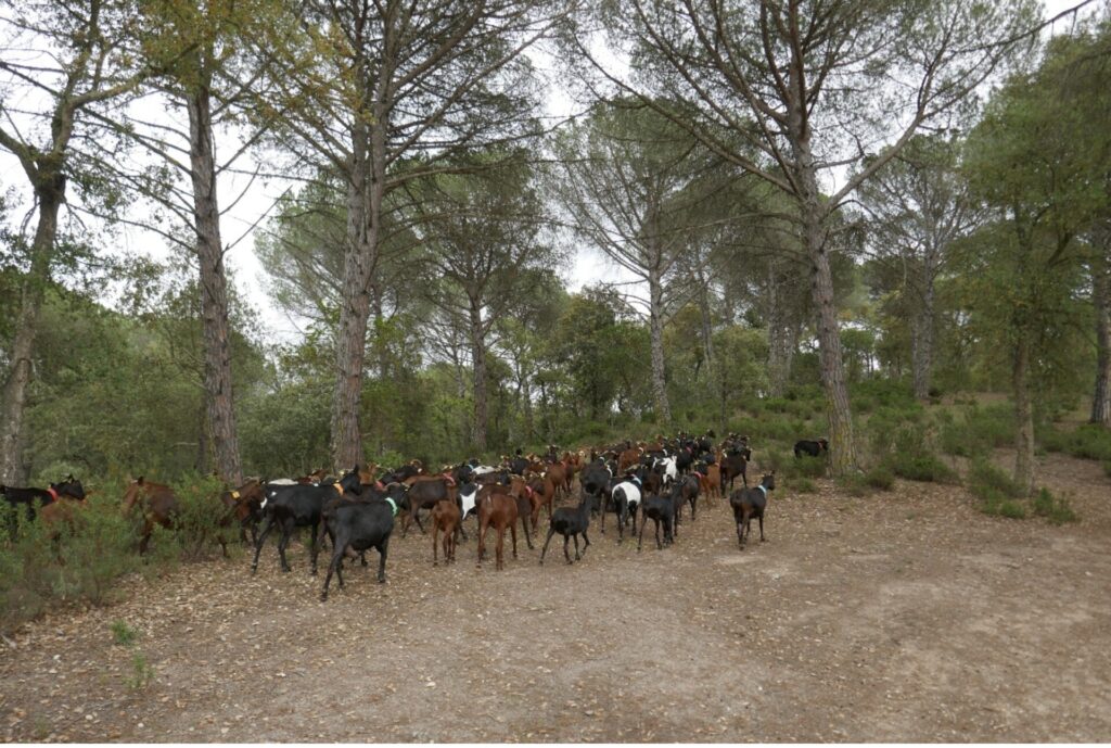 Goats in an Aleppo pine forest in Cassà de la Selva, Girona.